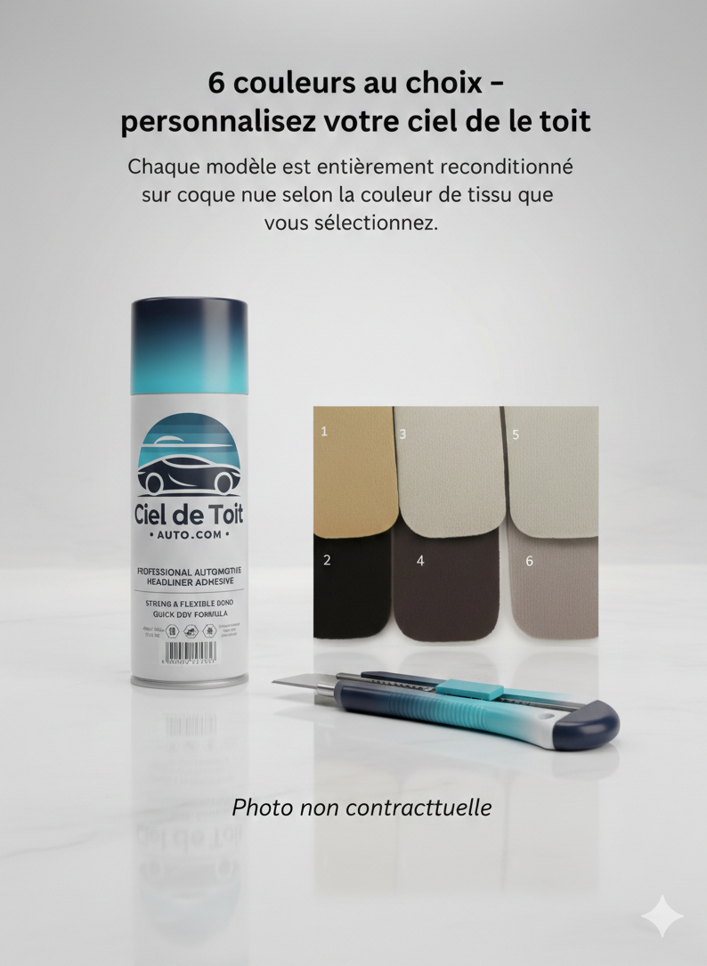 Donnez une seconde jeunesse à votre intérieur ! Accroche : Le Kit de Réparation Professionnel pour Ciel de Toit – La solution n°1 des passionnés d’auto. Avec ces produits nous réalisons plus de 200 ciels de toit par an.